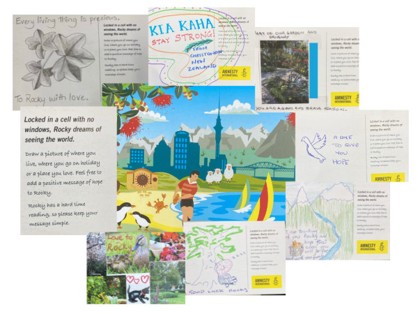 Some of the gorgeous holiday postcards sent from New Zealand to Rocky while celebrating Christmas on death row in Alabama.